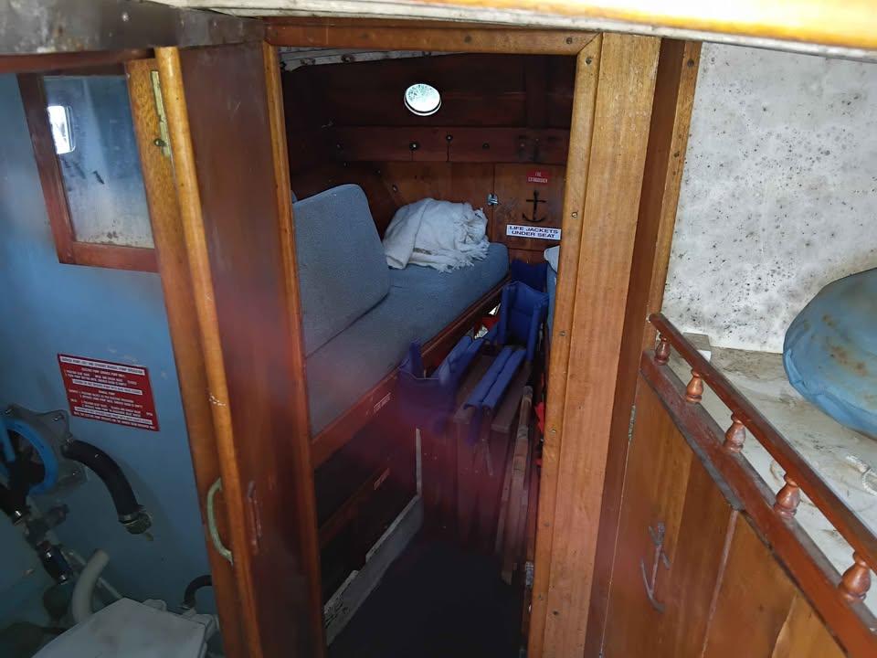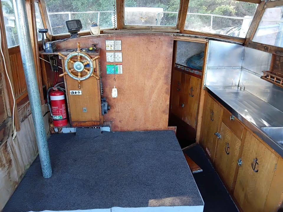 Needs a bit of TLC but not too much by the look of it, and has some great covers. Seller made the following comments at the time it was advertised: "External hull in great order with regular maintenance. Recently slipped with new docking strip, Brand new external covers. Powered by 4 cylinder Perkins diesel engine - working. Typical Halvorsen layout with large Double Berth fwd, aft bunks and toilet. CLASSIC Halvorsen helm and features. Galley consists of stainless steel bench and sink. Stern access via lovely Teak boarding platform. Requires full internal refit and varnish work."