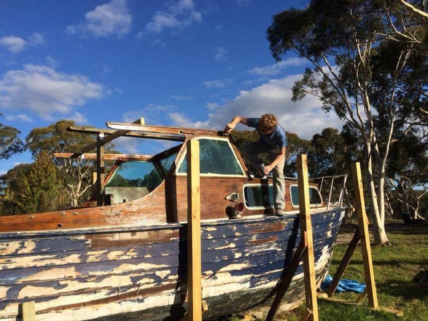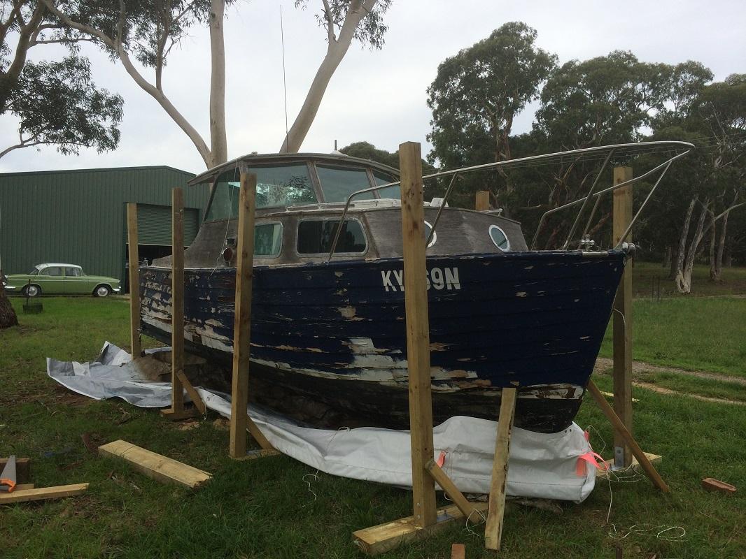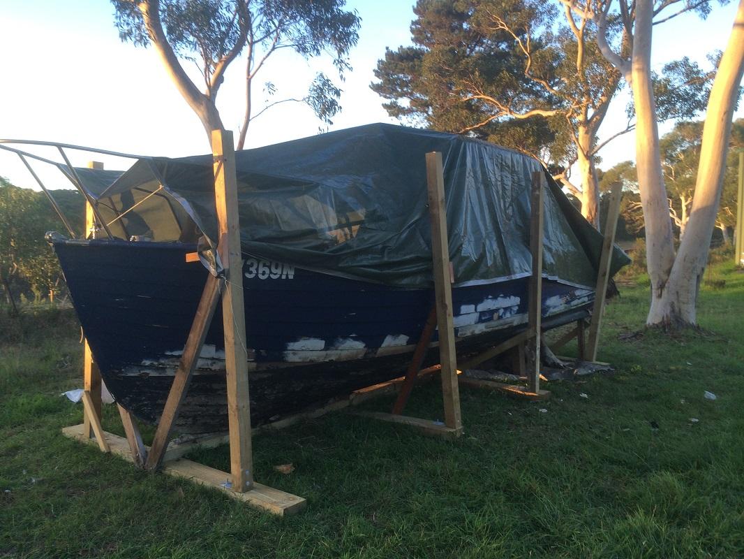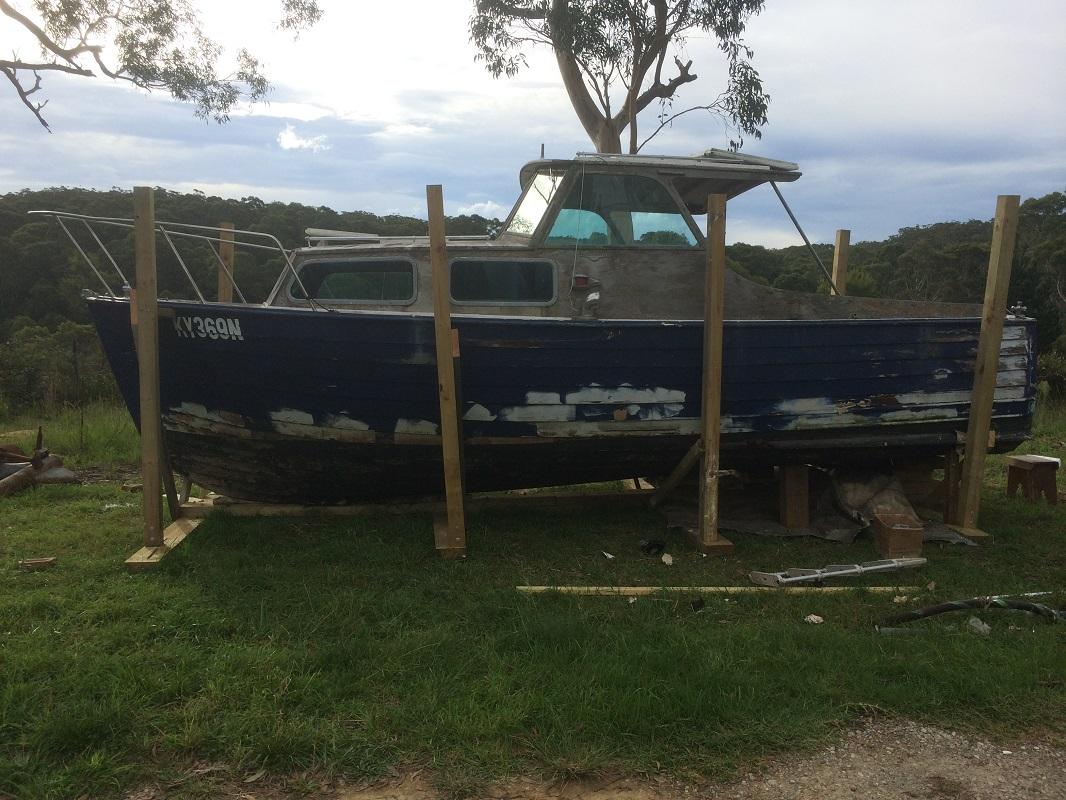 We got this 1960 Halvorsen sea skiff in early 2014, after finding it in Lovett Bay (Pittwater). Unfortunately, the boat had been poorly maintained for several years, but was thankfully kept afloat by a local boat builder until we took it out of the water.
