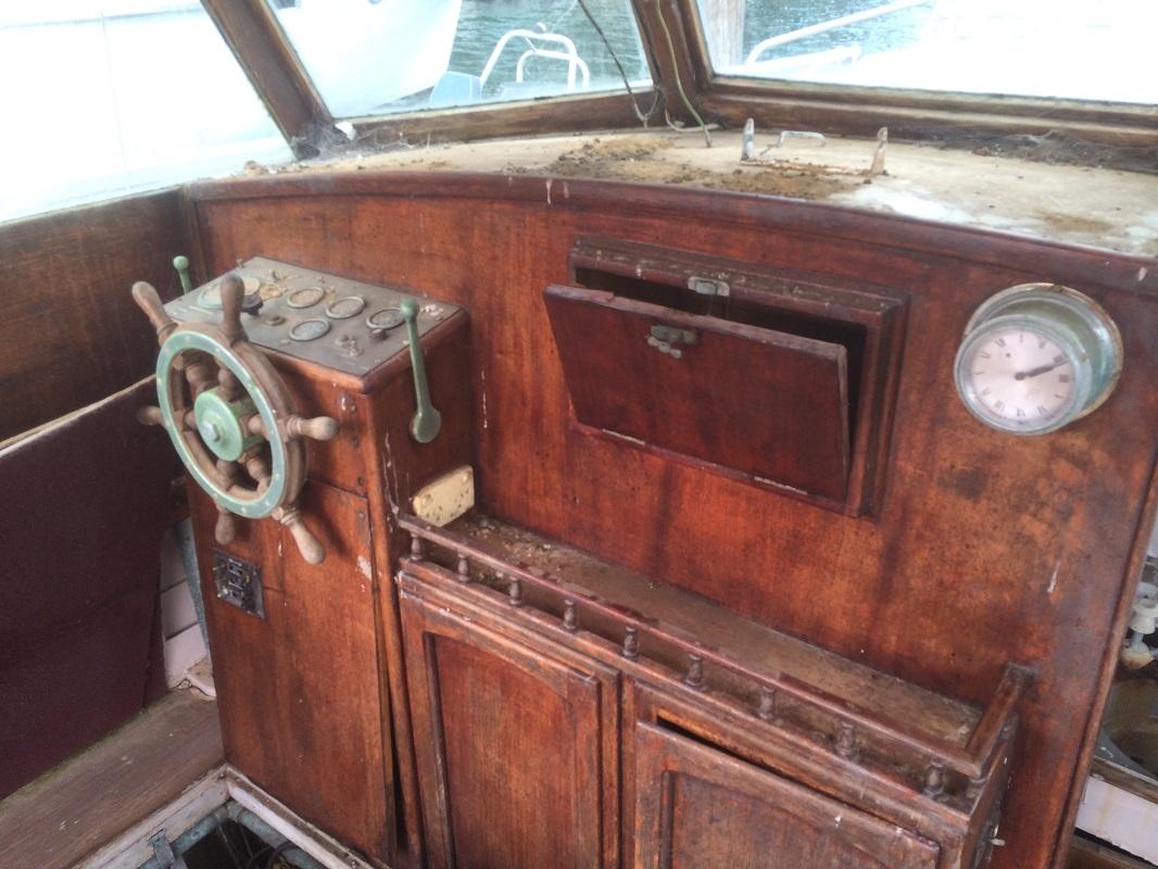 Everything else on the boat is original, and includes all Halvorsen badging, and confirmation that the boat was built by Halvorsen and Sons on a plaque above the helm. The superstructure of the boat is teak, and we have put a layer of varnish on that to preserve it for the time being (It had not been treated for some years we believe). The boat has all original instruments, and fit out (Bunks, kitchen, toilet etc. It even has its original copper fuel and water tanks - which in themselves would be worth a fair bit for the material!