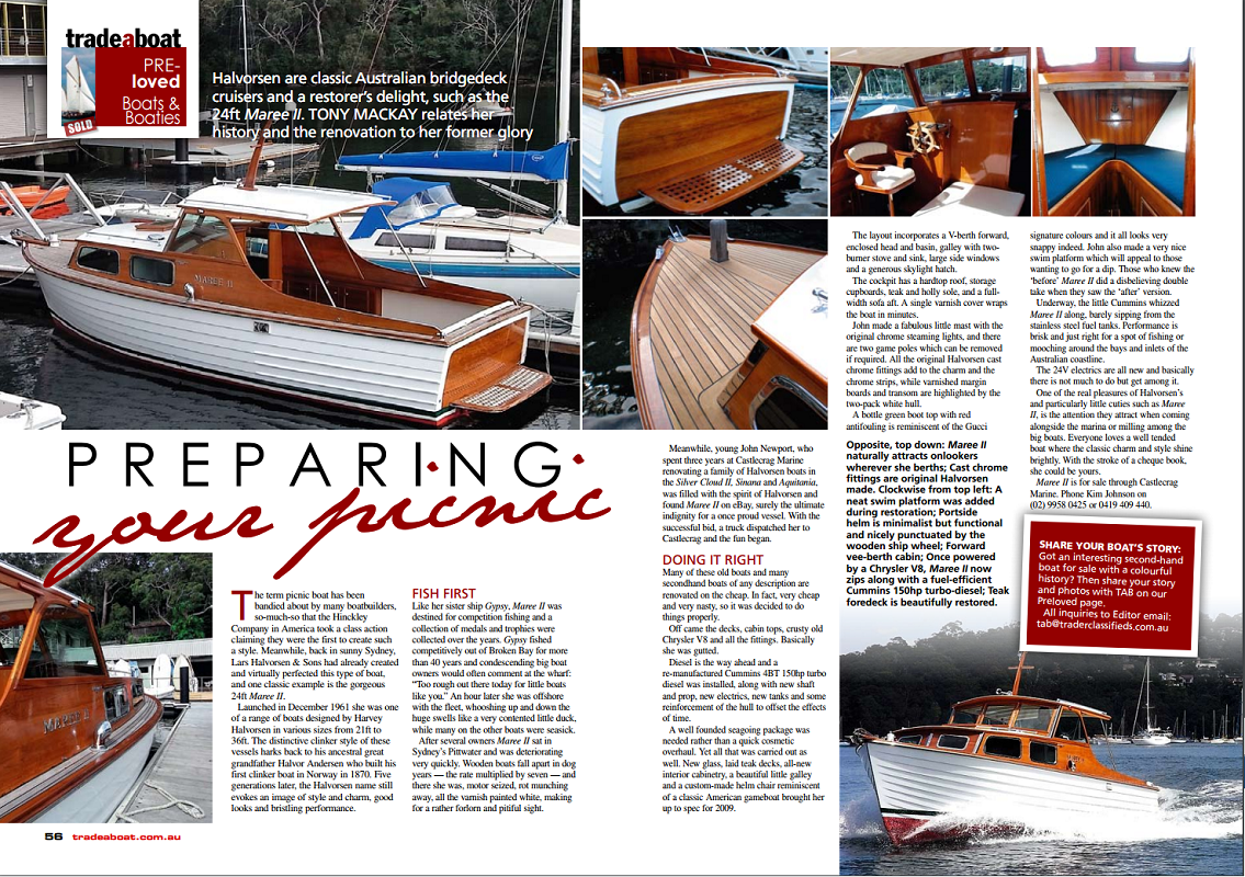 Please contact us if you have any information on the history of this boat, it would be greatly appreciated (including old pictures). We have found one image on the Halvorsen boat club website, (see last image). Really looks to be the exact same boat, however, the one in the photo appears to be called gypsy - whilst this one was meant to be Hoona???