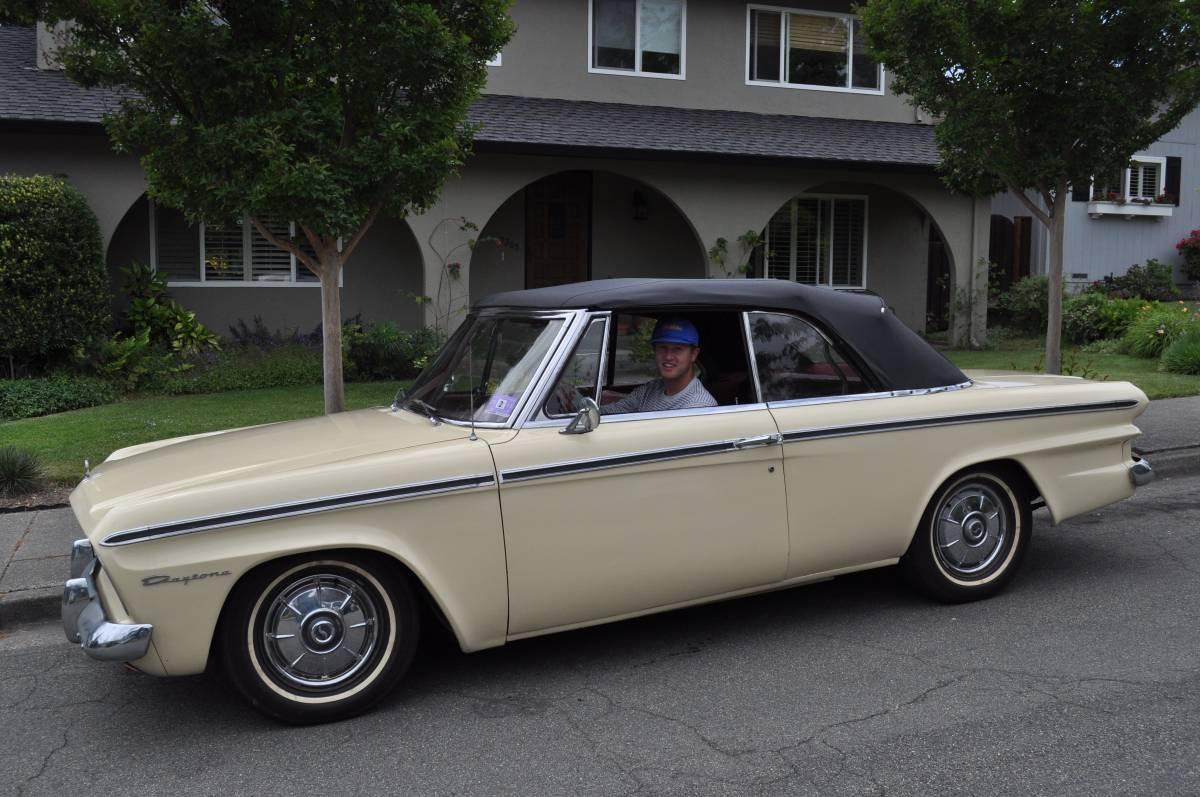 Its usually a while between discoveries - this the first 64 Daytona convertible that's come up in about 6 months or so, spotted on craigslist in Santa Rosa. The seller at the time noted it's fitted with the 259cu. 8 cylinder engine runs super strong loves cruising at 60mph. Floors solid, everything works except the convertible hydraulic pump needs rebuilding. A family car from NJ shipped to California in 2012 with 3,000 miles now reads 5,200. Since then complete new brakes (original soft shoes) transmission serviced new gaskets. door hinges replaced, New Water pump & hoses, Starter motor, cleaned out intake manifold and replaced the exhaust. There's a few minor surface rust on the exterior and some in the front where the body meets chassis.
