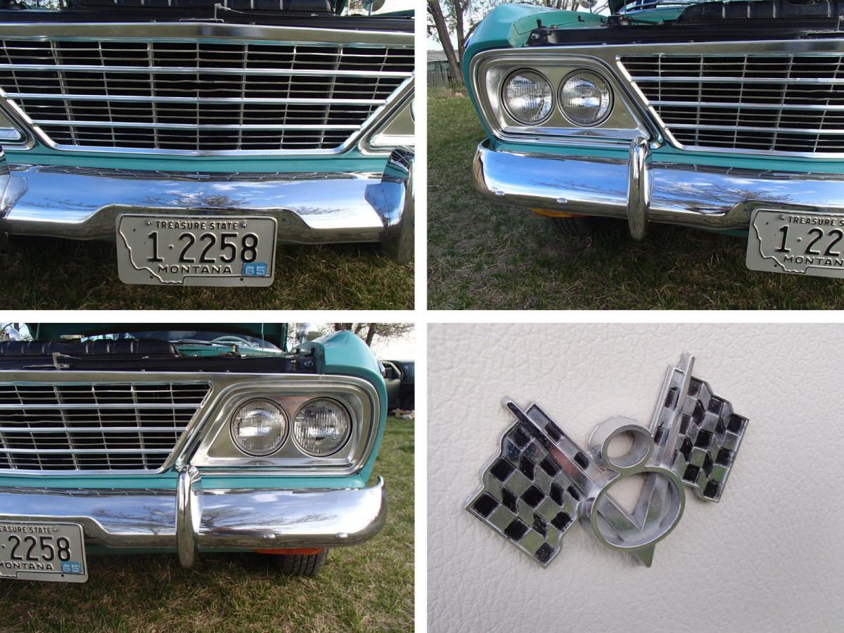 The car was repainted at some point in it's life, but the paint is not perfect - looks good from 10 feet. There is some bubbling / oxidisation. Chrome other than noted above is all in very good condition. The vinyl roof is believed to be the original.