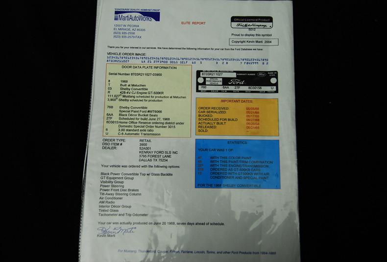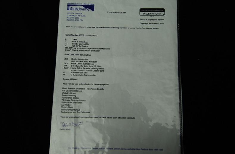 The 1968 GT500 saw the introduction of a revised front-end design, and the factory 428 ‘Cobra Jet’ motor, producing a claimed 335hp (although most suggest the figure was much closer to 400hp. This model saw several other changes or unique features, including Stewart Warner oil pressure and amperage instruments, Cobra embossed console, and Cobra Jet emblems on the fenders, dash and fuel cap. Ten spoke alloy wheels (as applied to this example) were also a factory option.