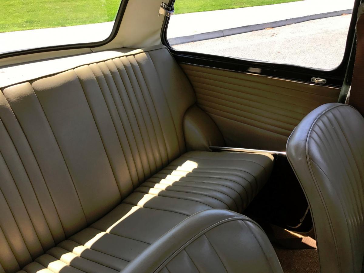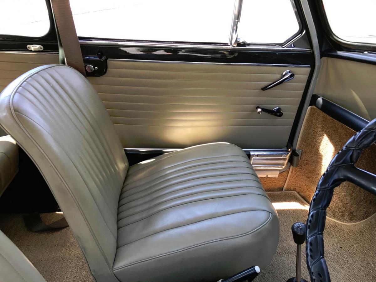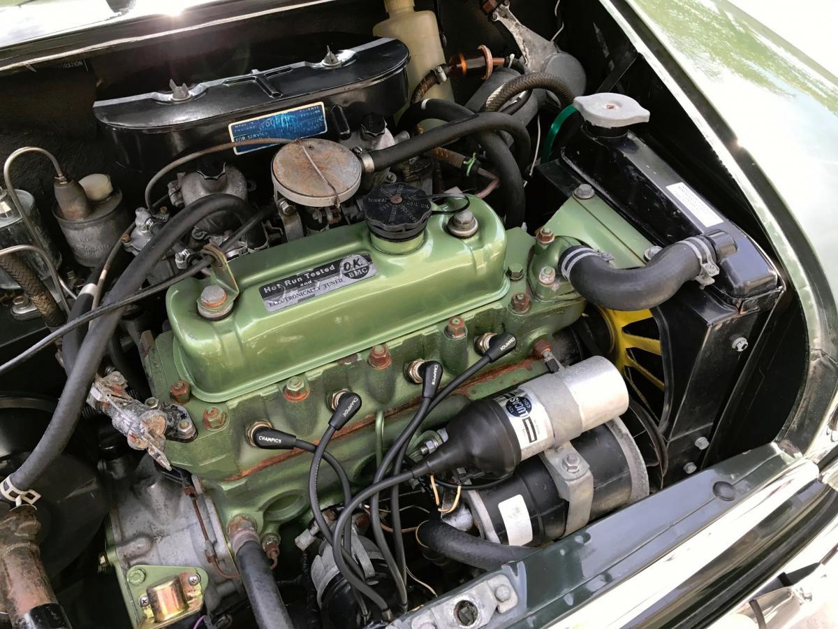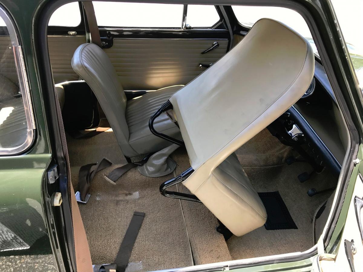 The 1275 BMC inline-four breathes through dual-SU carburetors and features a front mounted oil-cooler. The engine was rebuilt to original specifications six years ago due to a whining idler-gear bearing. The original pistons, crankshaft, camshaft, connecting rods, cylinder head, and gearbox were reused. Replacement bearings, gaskets, and seals were sourced from Heritage Garage in Costa Mesa, California.