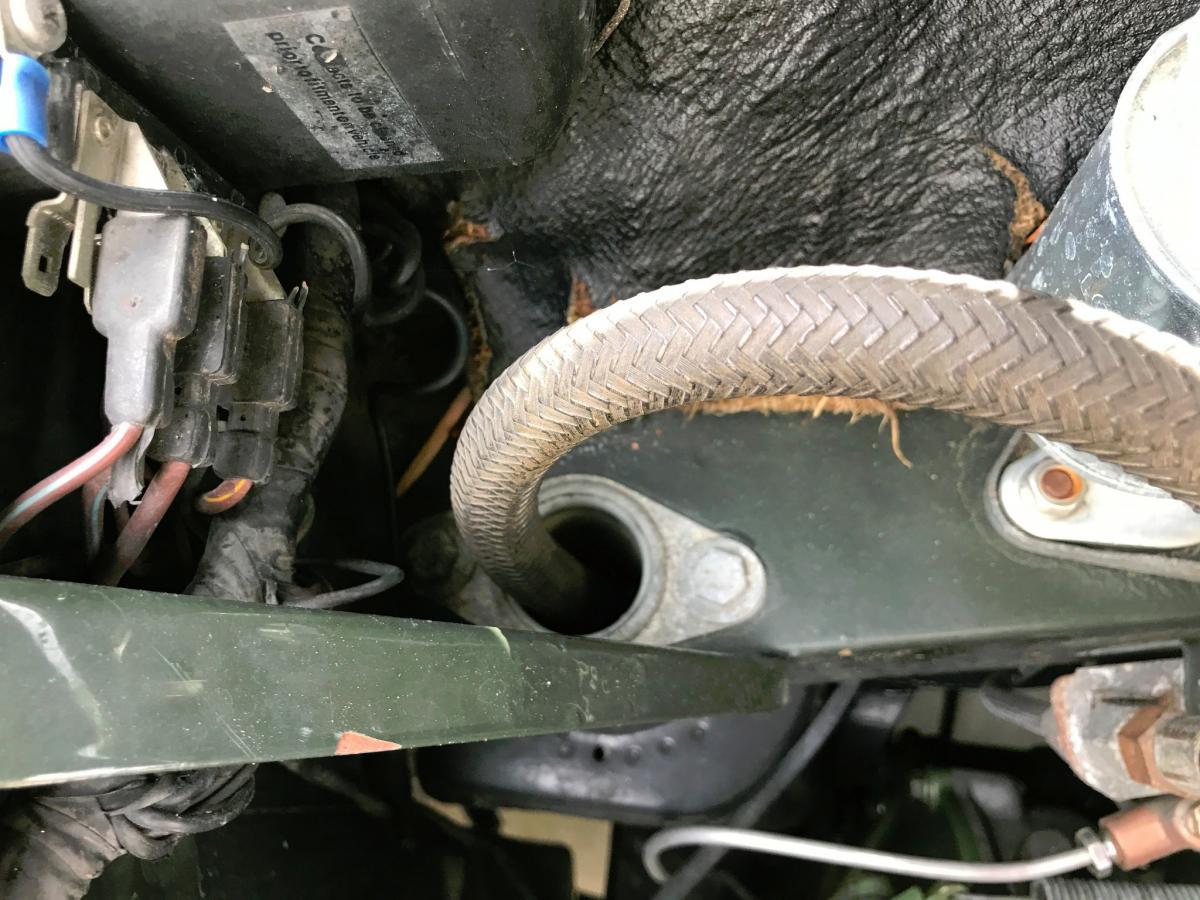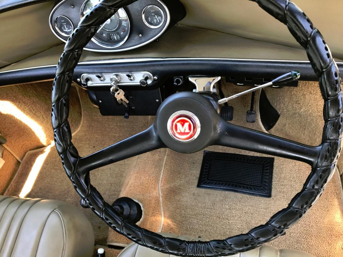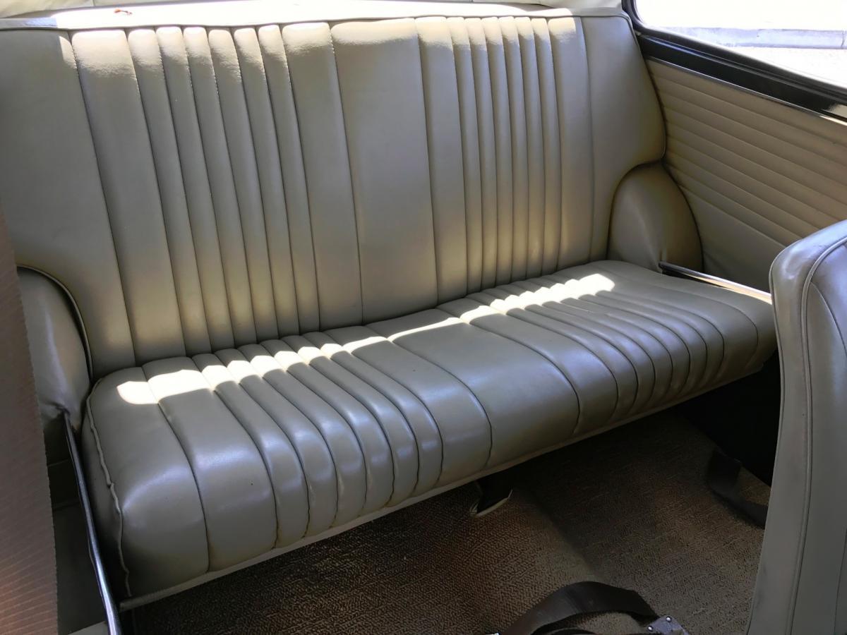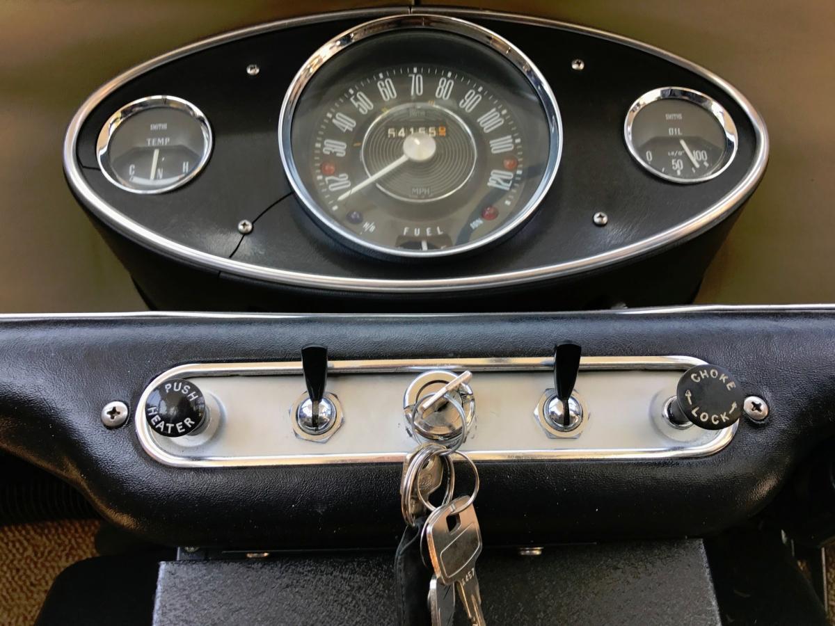 The 1275 BMC inline-four breathes through dual-SU carburetors and features a front mounted oil-cooler. The engine was rebuilt to original specifications six years ago due to a whining idler-gear bearing. The original pistons, crankshaft, camshaft, connecting rods, cylinder head, and gearbox were reused. Replacement bearings, gaskets, and seals were sourced from Heritage Garage in Costa Mesa, California.