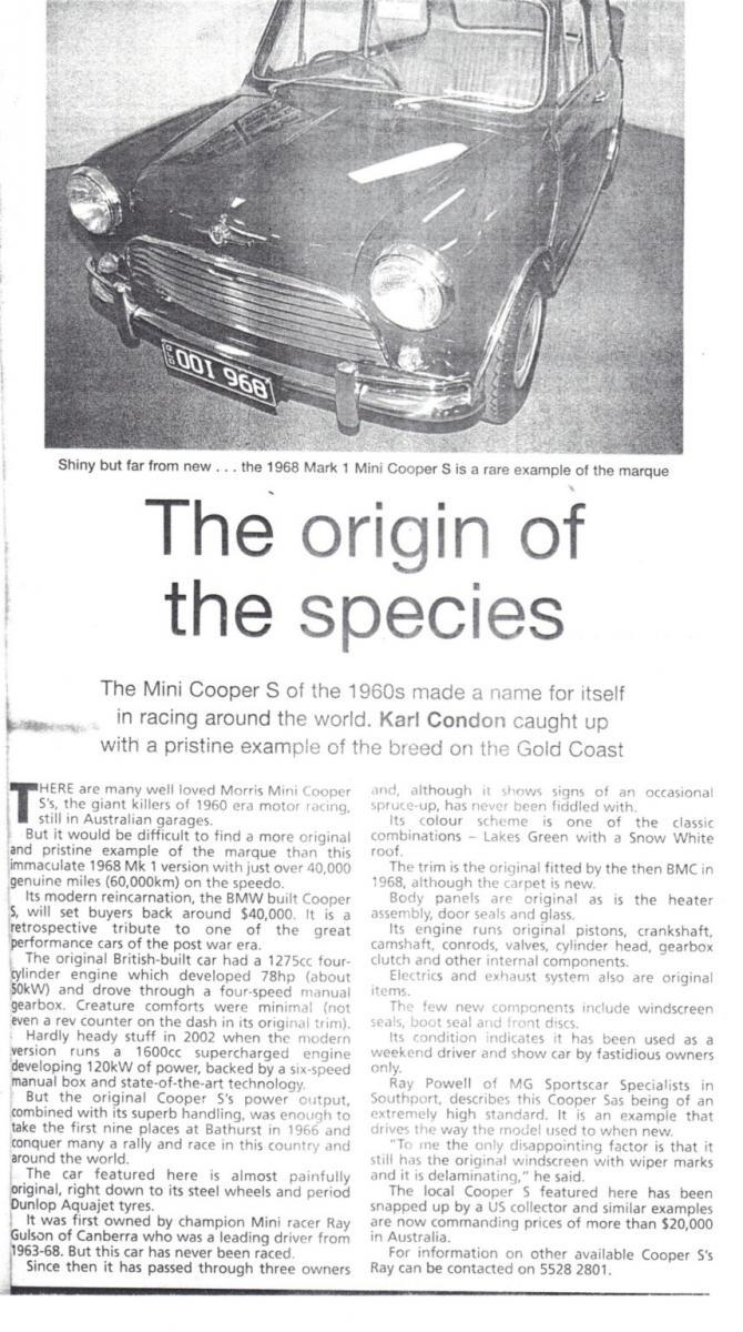 This Cooper S appeared on bringatrailer.com in early May 2017 - passing in at $27,000 (USD) (approx $36,500 AUD). One of several Australian Spec Cooper Ss that have made their way over there. The following comments were made at the point of sale:
