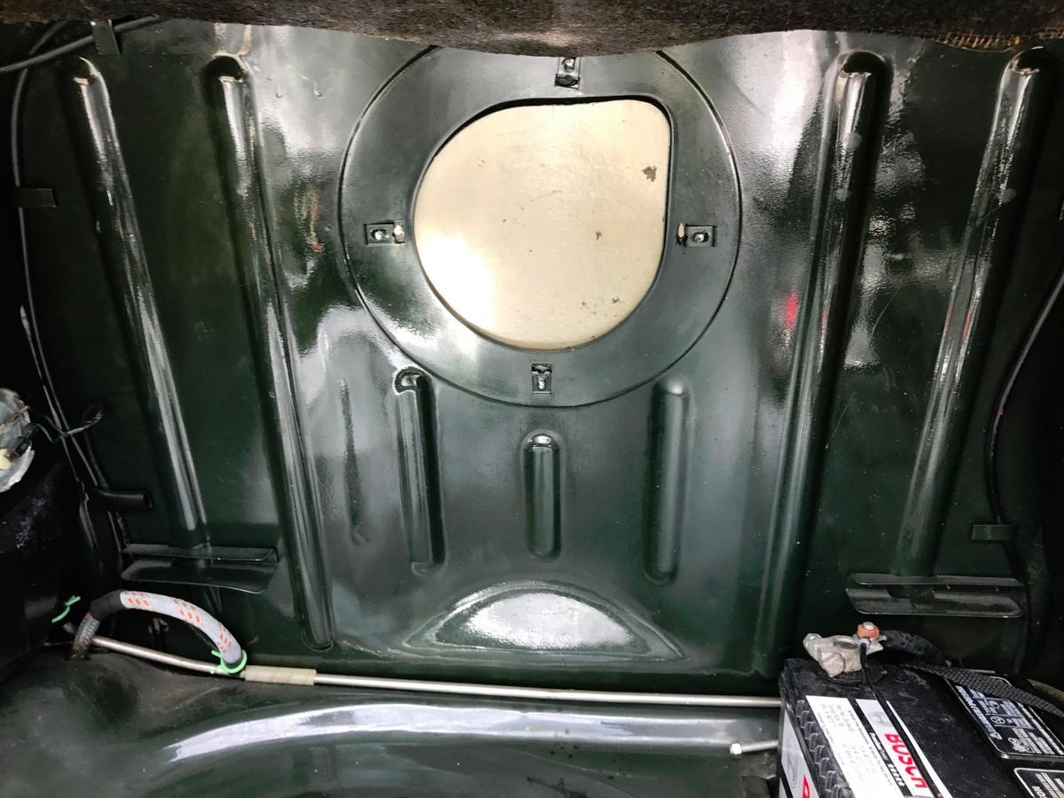 The 10×5″ Minilite wheels are wrapped in Yokohama rubber, and the 7.5″ S disc brakes are controlled with a later-model master cylinder and servo. The original undercoating is reportedly peeling on the undercarriage, and some surface rust is said to be present underneath and along the rear bumper lip.