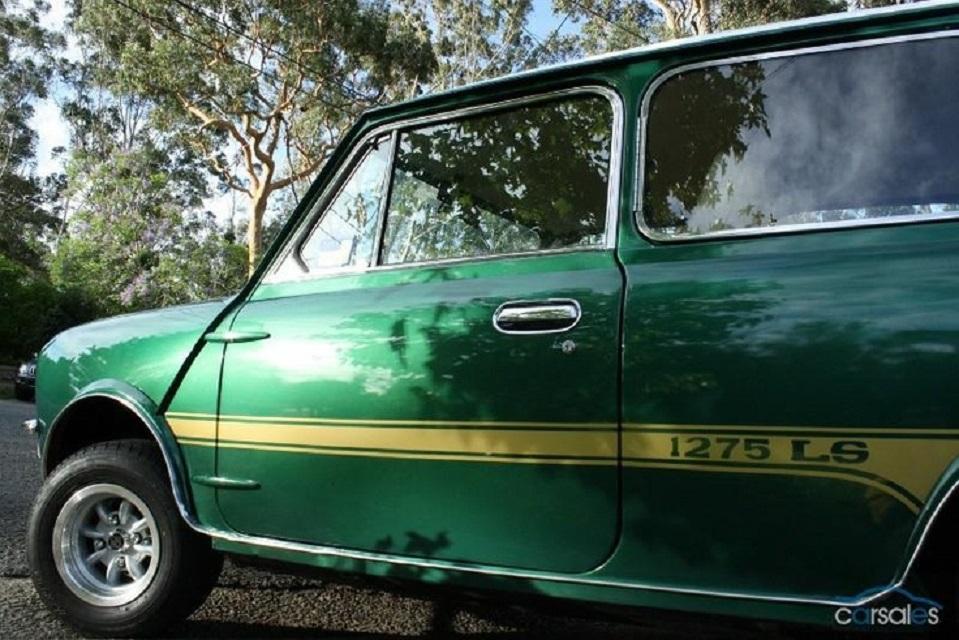 This car, along with the nugget gold version of the 998 LS represent the most rare of all production mini's. This mini has clearly been restored in the original Iridium Dulux green, with gold stripes (as was also original). It is said that only approximately 8 of the green and 8 of the gold 998LS cars were manufactured, in order to test the waters for the upcoming 1275 LS. From my understanding, these green and gold cars were distributed to dealers around the country to guage a response in order to make an informed decision for the 1275 model.
