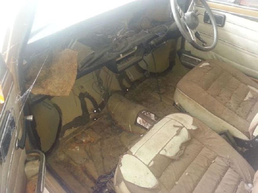 Other than the missing engine, the car appears to be reasonably solid and rust free, other than a few typical spots. It still has its original seats, steering wheel and long range tank, along with the 12 inch wheels. A lot of accessories appear to have parted however, such as the dash instruments and radio.