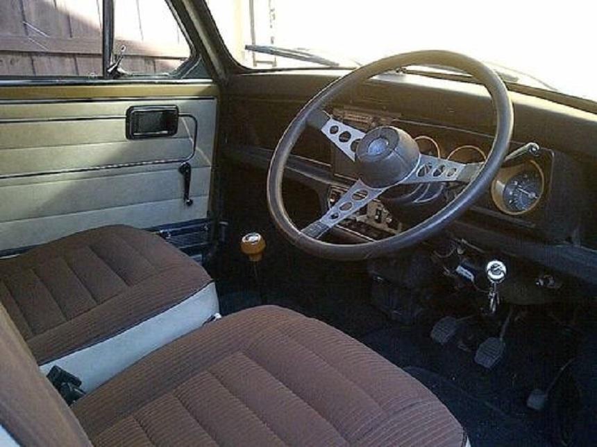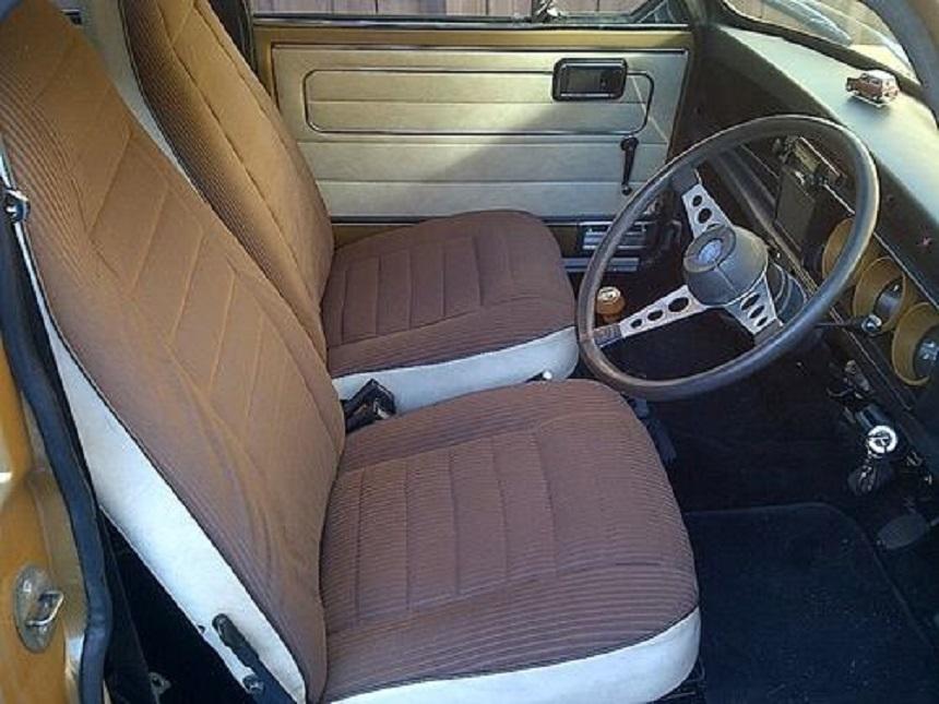 Interior features included a single speaker radio, triple pod instruments, adjustable seats and Formula GT steering wheel. Silver cars were generally fitted with Red corduroy style velour cloth seats, with black vinyl seat backings, door trims and roof lining. Gold cars were fitted with the same style fabric (but chocolate brown in colour), backed by cream vinyl, door trims and roof lining.