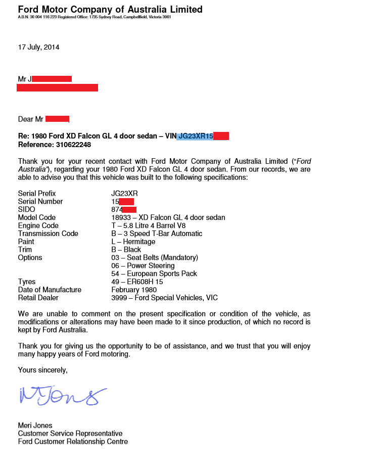 The current owner recently provided us with the details of this very nice Hermitage ESP which we've now added to the register. This exceptionally rare factory T-code 5.8l ESP optioned Falcon is a very early car, being a February 1980 build. We were previously under the impression that production of ESPs commenced later than this, but the Ford verification letter confirms the cars were being built this early.
