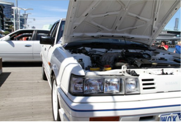 For those that don't know it, this is an Australian special edition Nissan Skyline R31, known as the GTS1 Silhouette. All the GTS1 cars were painted white. Some of the visually distinguishing features of the car included 16" white powder coated 11 spoke wheels, rear spoiler, unique SVD / Silhouette decals and sports cloth interior - along with the unique badging. The cars were fitted with a turbocharged RB30 engine and stage 1 camshaft, producing 130kw, and were only available in manual transmission. Extractors, and 2.25" exhaust and an LSD were also fitted standard.