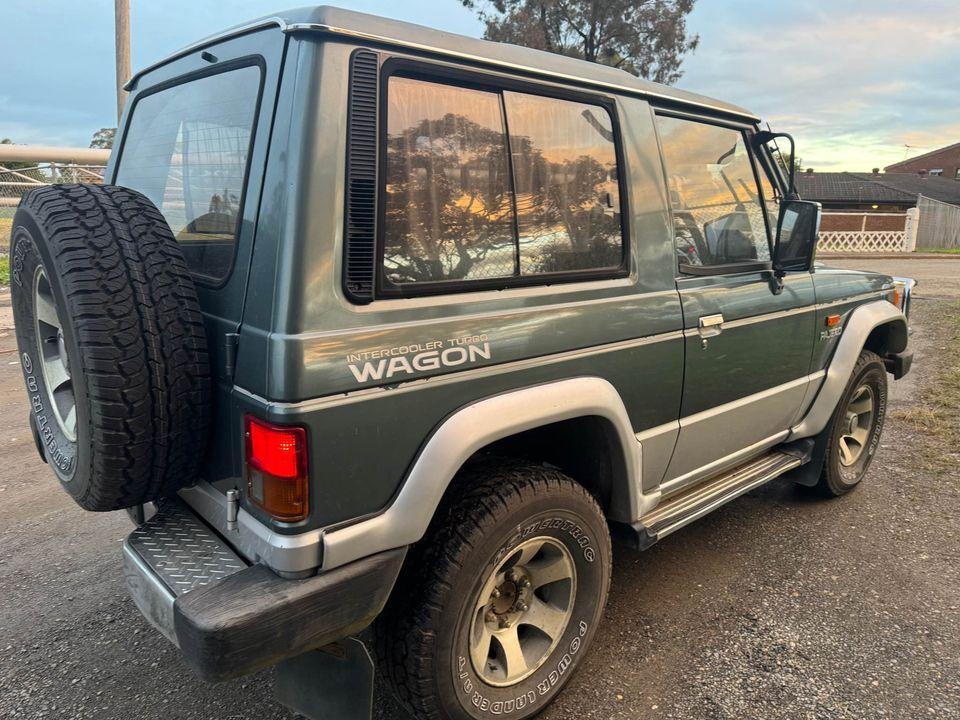 A real rare item here with the full kit - an automatic Turbo diesel SWB series 1 Pajero. Most that you see in Australia are the povo pack SWBs which are absent the flares, and 'luxury' trims (and very few are auto. This example was advertised on FB marketplace in July 2024, asking just $6,000 AUD. It has a 2inch lift kit (I'd prefer the standard height to be honest), power steering, power window, and of course centre lock diff. Awesome and capable offroad, these are getting very rare and are a great modern classic off roader.