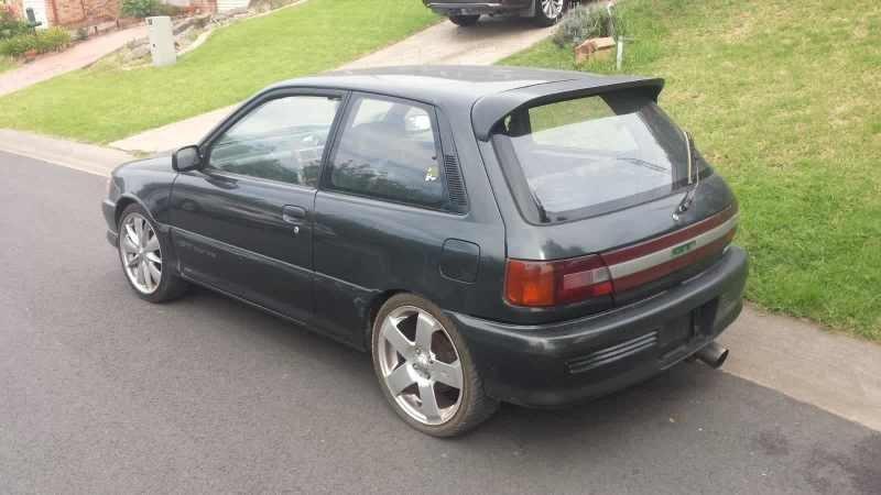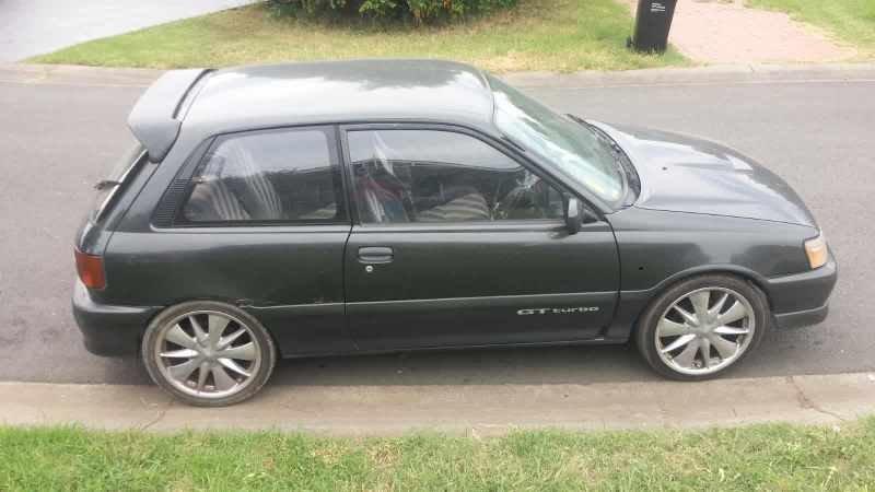 Found on FB marketplace in Aug 2024.. This is a survivor - now 32 years old. The seller at the time was asking for $9,500, and made the following comments: It will cost you over $20,000 to buy, import and comply a starlet GT from overseas. This is Australias cheapest Starlet GT currently advertised. Rare and popular green colour version. Toyota Starlet GT. 170,000lms MODS: Lowered on King Springs. Exhaust with rear muffler Boost gauge Boost controller with launch control. Mag wheels. Standard top mount intercooler. Battery in the boot Front underside support braces. CT9 turbo. Aftermarket turbo manifold (Stainless). OVERALL: Clutch very good. Gearbox very good. Original green paint. PPSR clear No chassis damage. Straight car. Cons: * Minor scratches to wheel arches. * Engine recently removed from car due to spun big end bearings. Ready to be fixed. (Deciding on power plan).