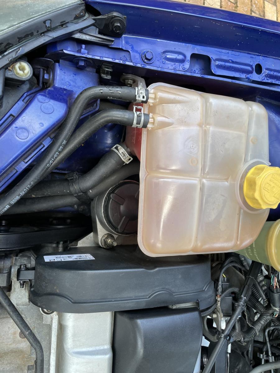 Pretty much a full cooling system replacement from the right thermostat housing (with the hole for the thermostat!), thermostat (Febi Bilstein), water pump, radiator, all pipework, the troublesome coolant linkage pipe (genuine Ford - getting hard to source nowadays), coolant reservoir (genuine Ford), and Castrol red coolant