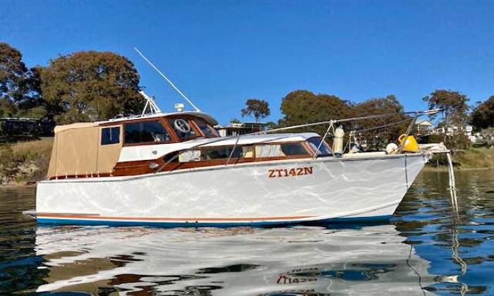 Prfessionally built by Ches Fumini (said to be for himself), ‘Sicano’ is dynal-sheathed epoxy- coated triple-diagonal hull in Australian Cedar; two-pot gloss painted cabin-tops & deck-edging with non-skid walkway, and both-sides varnished Teak walls and window-framing. Accomodating four adults comfortably via dbl forward and mid-convertible berths; dining, kitchen & bathroom; raised helm and...