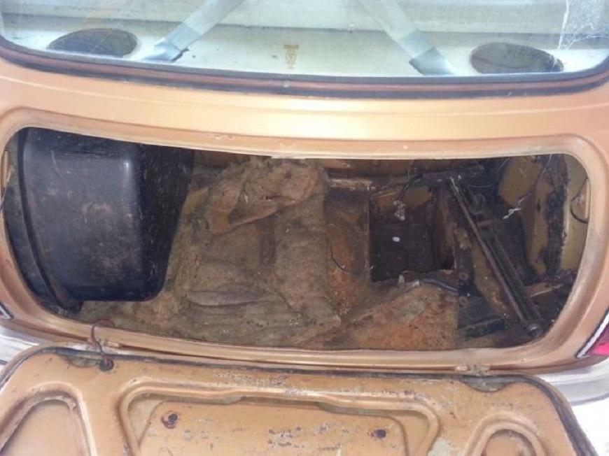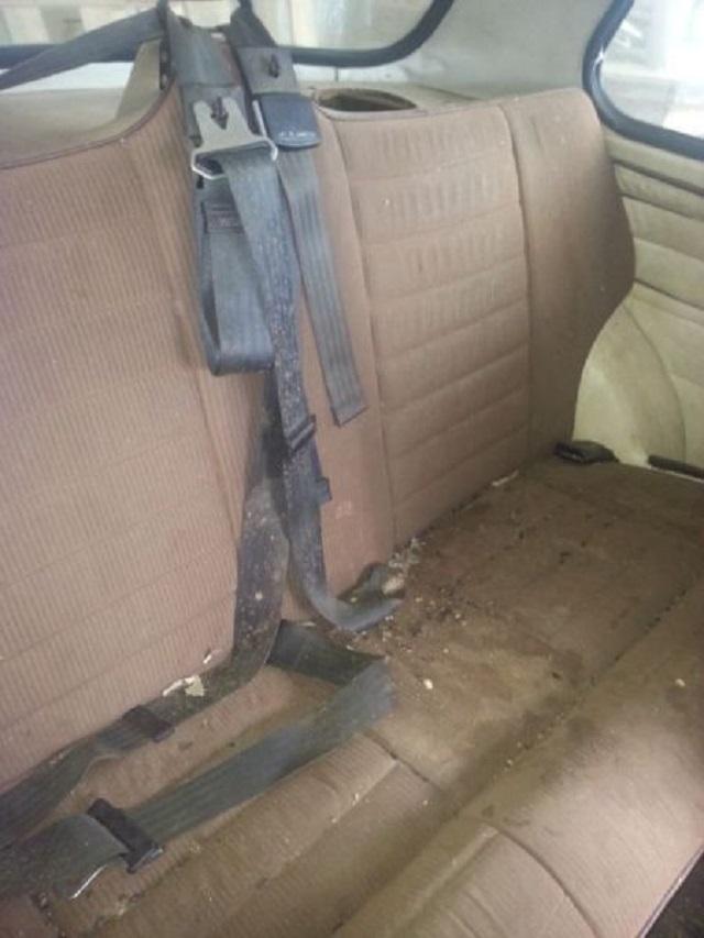 Other than the missing engine, the car appears to be reasonably solid and rust free, other than a few typical spots. It still has its original seats, steering wheel and long range tank, along with the 12 inch wheels. A lot of accessories appear to have parted however, such as the dash instruments and radio.